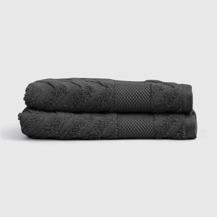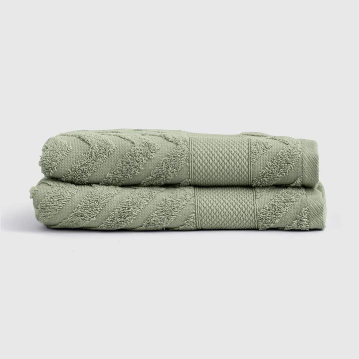 Plaza 2-Piece Face Towel Set in a Zig Zag Stripe Pattern.
