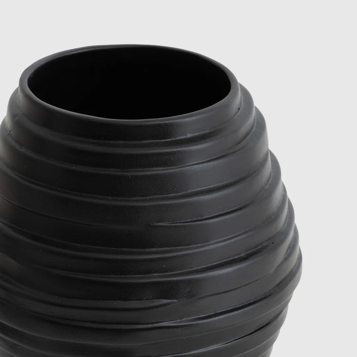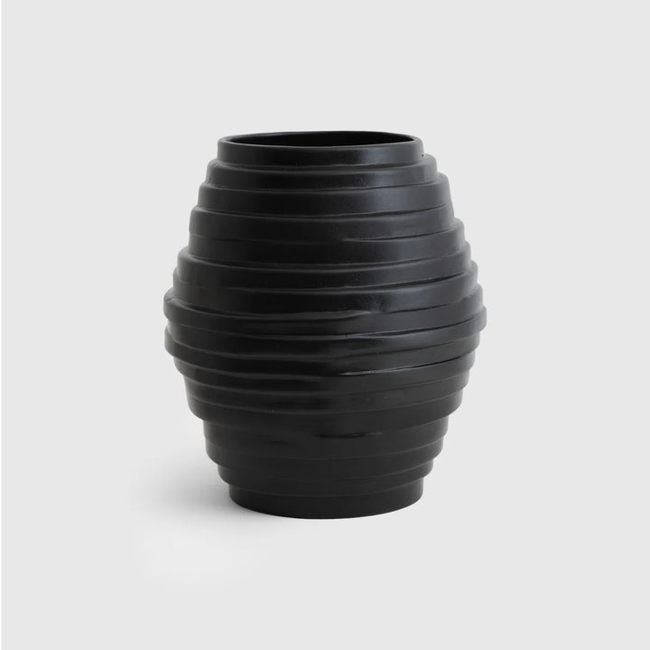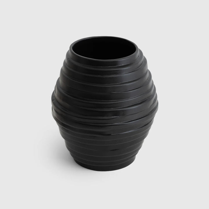 مميزة بشكلها الأسطواني الأنيق والمزين بخطوط محفورة بعناية، تمنح إحساس بالحركة والعمق. التناسق بين اللون الفاتح مع لمسات بنية خفيفة، وبين القطعة السوداء الداكنة، يصنع تباينًا جميلًا يبرز جمال كل قطعة سواء لوحدها أو كجزء من المجموعة.