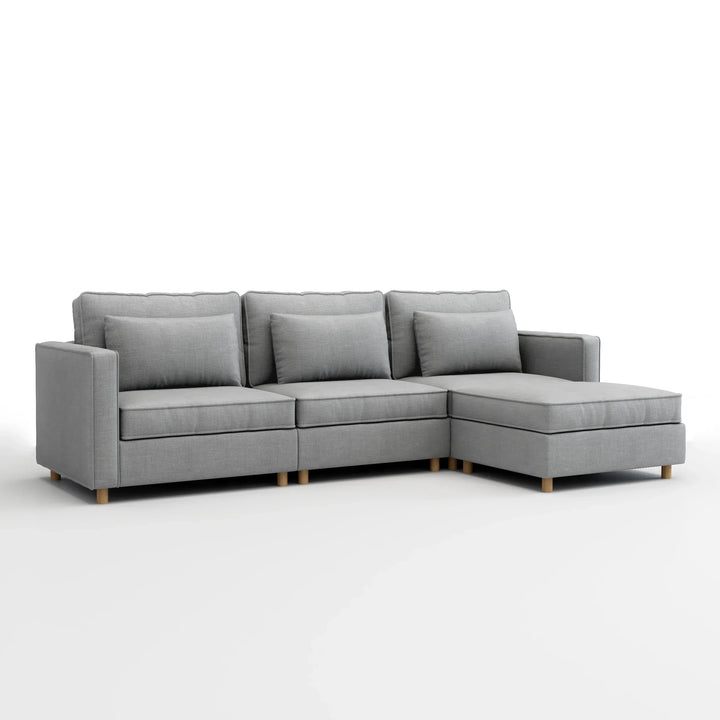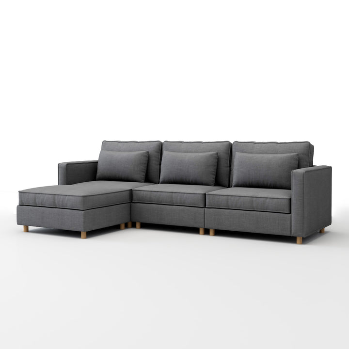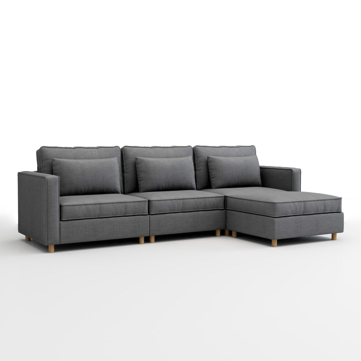 - قەنەفەکە لە 3 کورسی سەرەکی فراوان پێکهاتووە جگە لە کورسیەکی زیادە کە ئاراستەکەی لەکاتی داواکردندا دیاری دەکرێت بەشێوەیەک کە گۆشەی قەنەفەکە بەگوێرەی دیکۆری شوێنەکە بەشێوەی بەلای ڕاست یان چەپدا بێت، جگە لە 3 گۆشە کە پشتت لە کاتی دانیشتن پاڵپشتی دەکات و 3 گۆشەی بچووکیش بۆ ڕازاندنەوە.